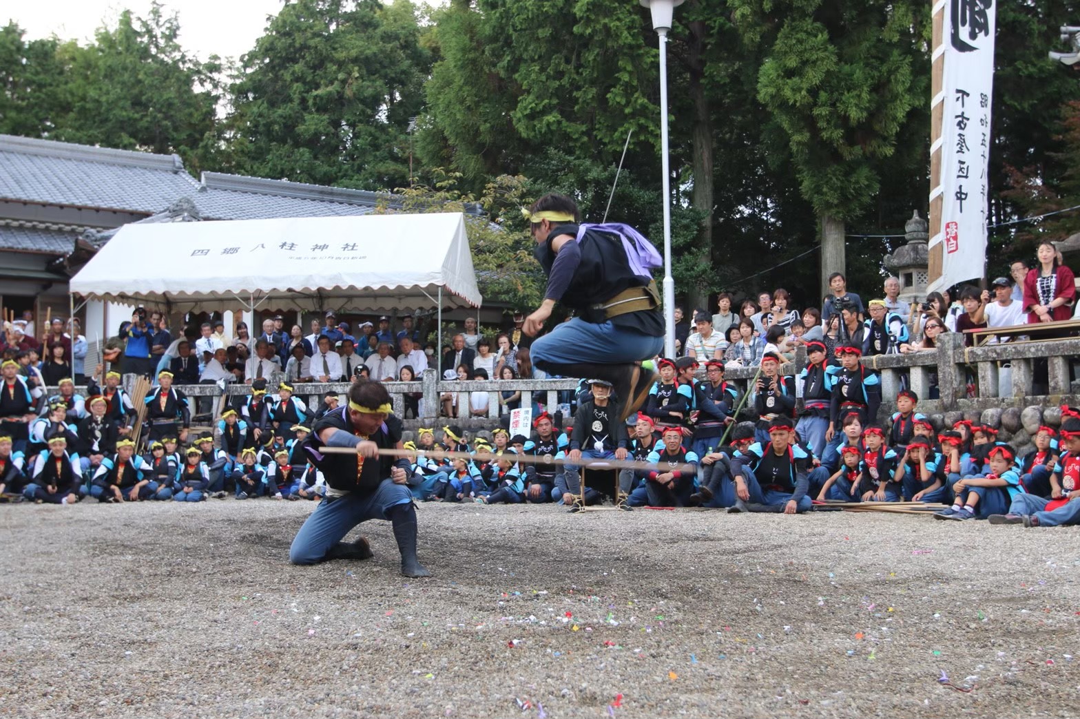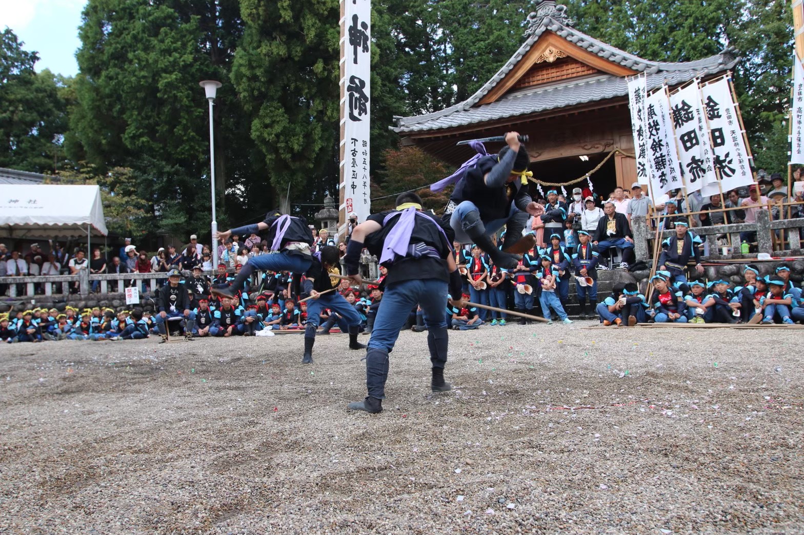 時代を経て武術の技は神社、仏閣に奉納する演技、見せる演技に変化し、全国でも珍しい農民武芸として伝わっています。